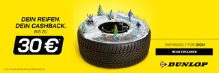 Beim Kauf von vier Dunlop PKW Winter- oder All-Season-Reifen ab 15 Zoll erhalten Sie einen Cashback von 20 €. Ab 17 Zoll erhalten Sie einen Cashback von 30 €.